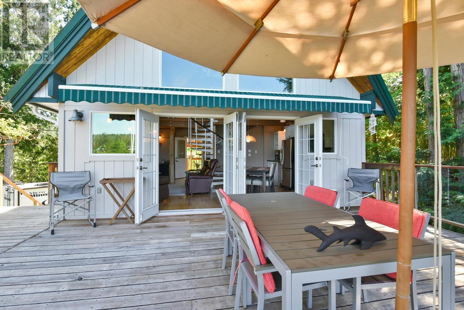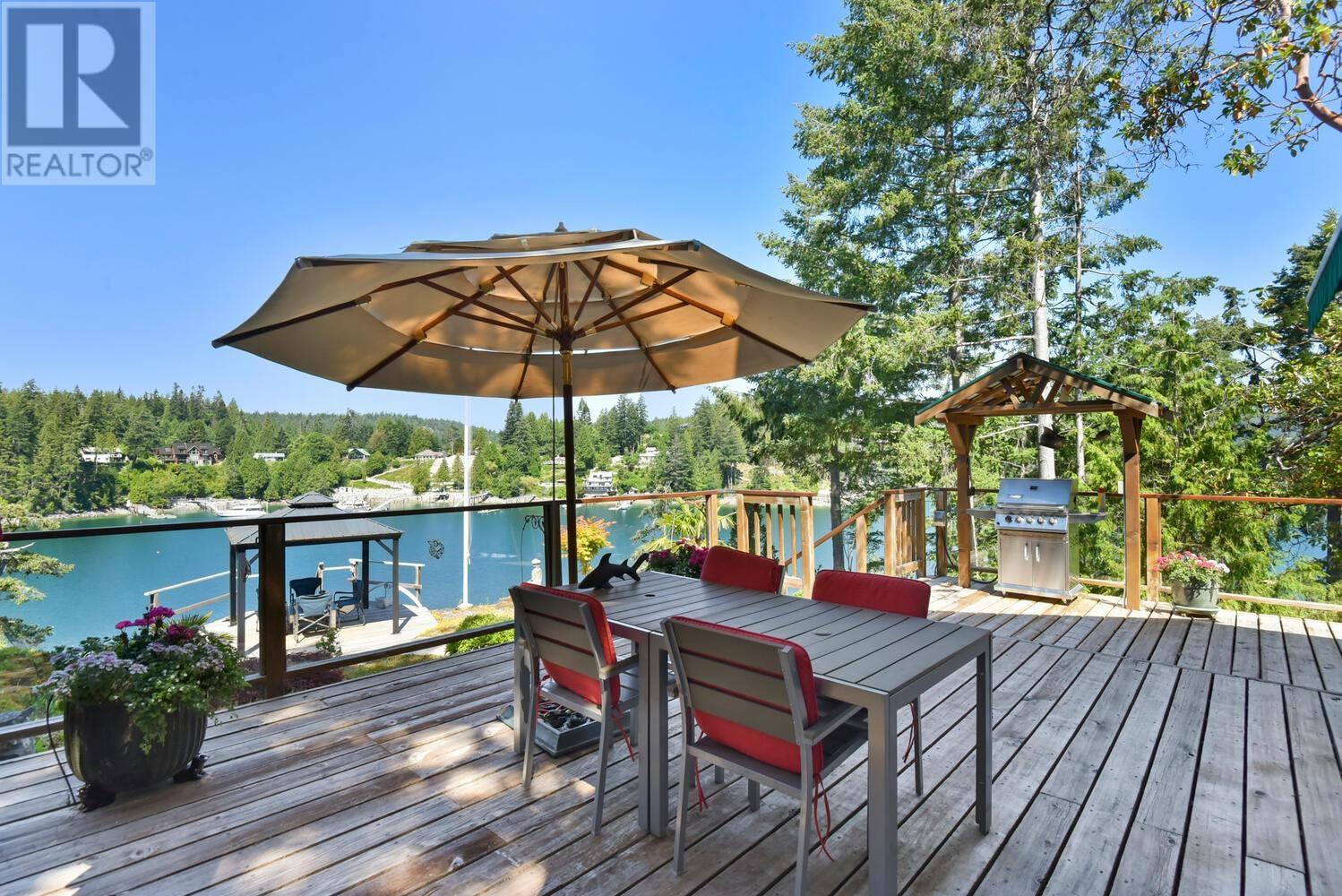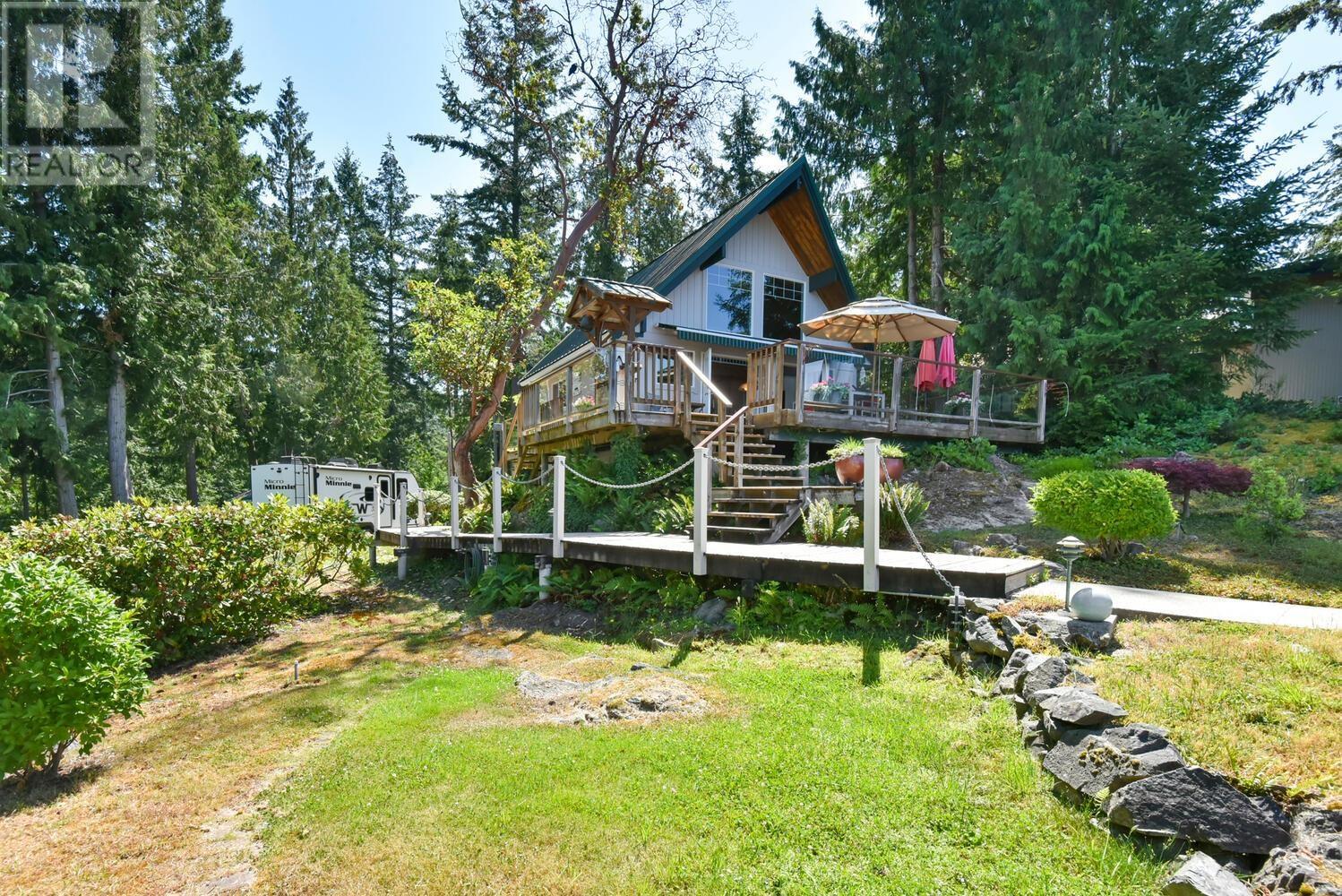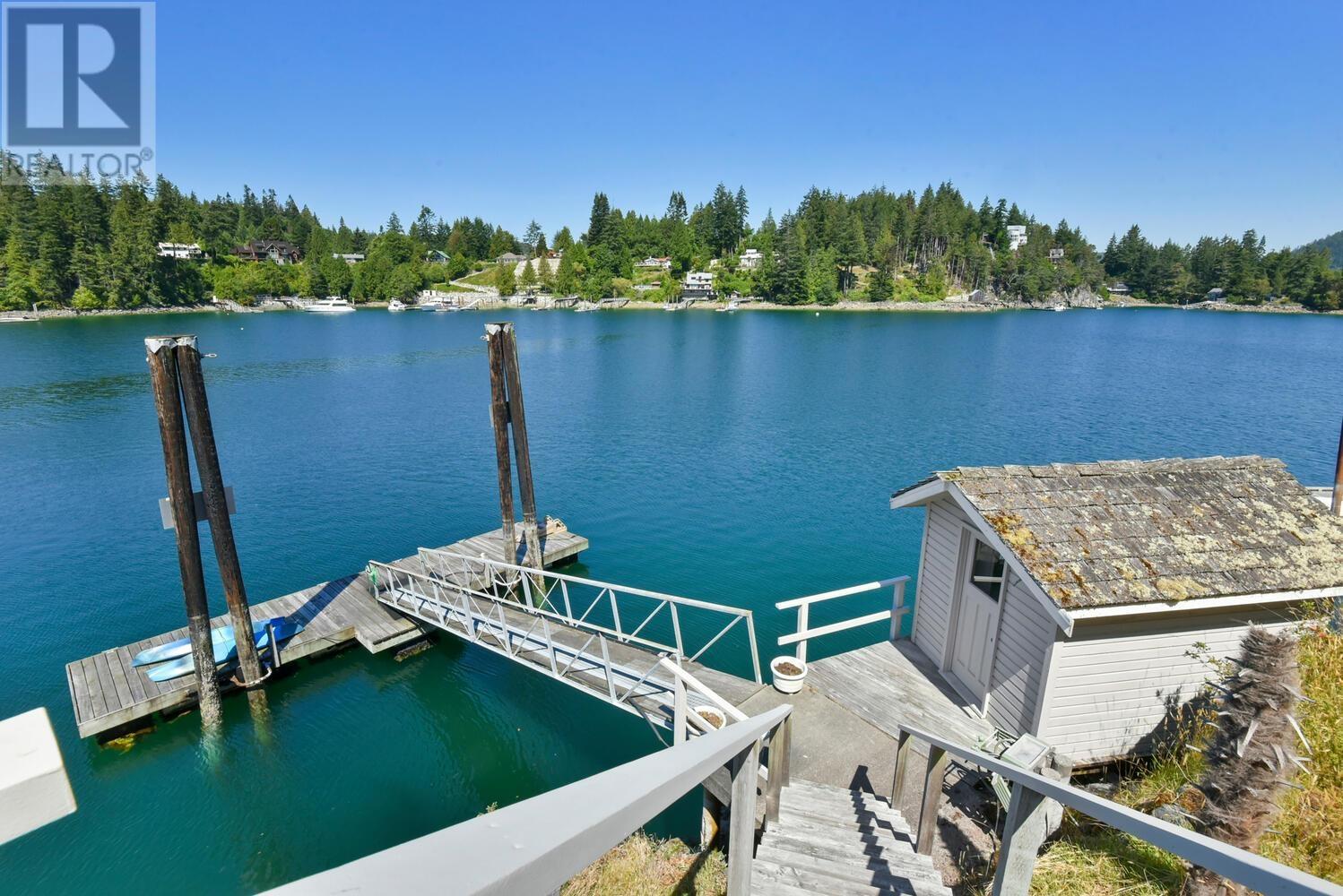 Adorable 1 bed/1 bath WATERFRONT cottage + a self contained studio suite perched atop Bowsprit Road, one of Pender Harbour’s most coveted locations offering a private 40′ dock in addition to a boat slip at the community marina. This is very protected, year round deep water moorage out of the weather elements, and there is power, water & a boat shed at the dock. The cottage is updated with a lovely kitchen, loft bedroom, living area w’ gas FP & a double set of French doors leading to the spacious patio for soaking in the sunshine, relaxing & entertaining. Fabulous secondary patio area overlooks the dock, which is steps away. Workshop/garage space, 2nd outbuilding for a studio/bunkie, lovely mature landscaping/gardens. Thoroughly enjoyed by the same family for 45 years, now it’s your turn! (id:59197)