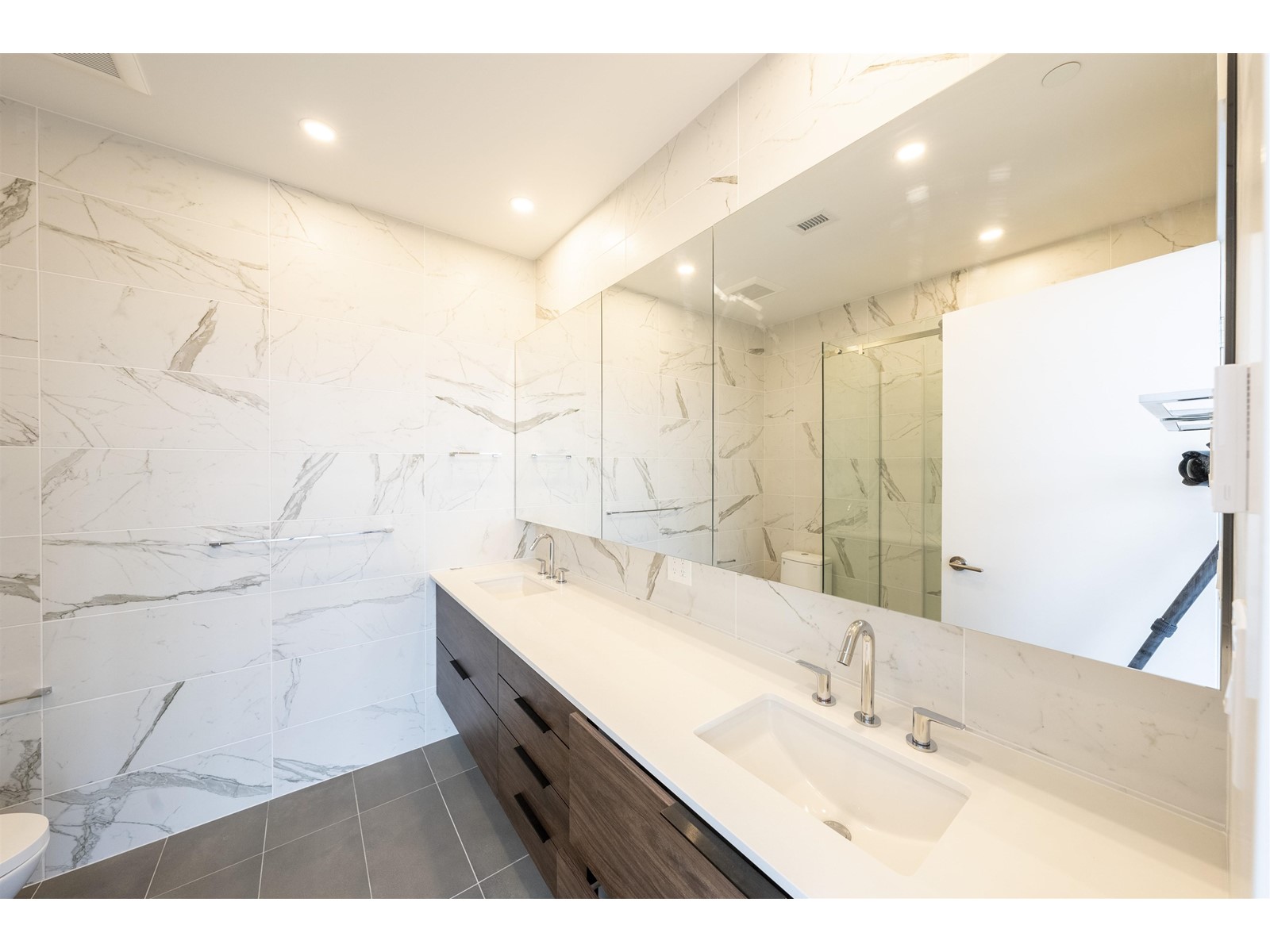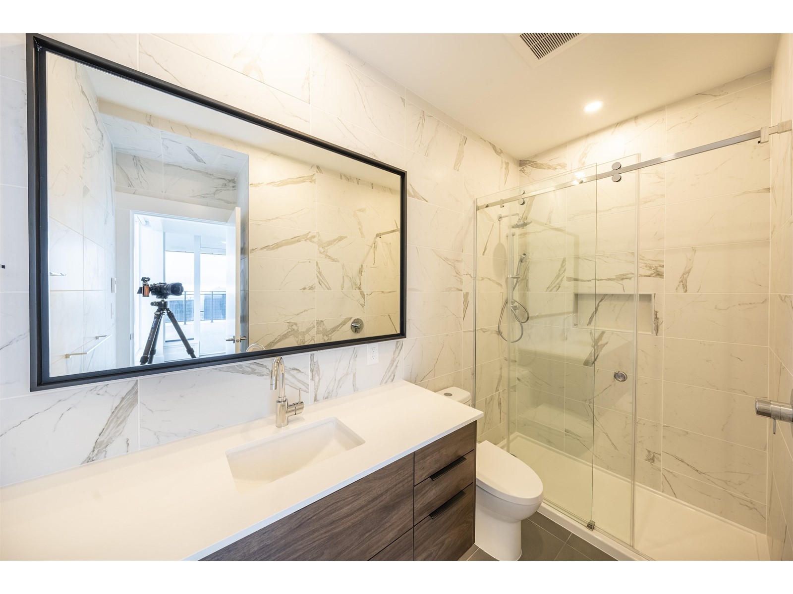 Sub-Penthouse In the heart of Metrotown. This South,West & East facing corner 3 bedroom unit+3 bathrooms has unobstructed view of cities,downtown, mountains, Deer lake & Burnaby lake.Over height ceiling, Air conditioning, 2 parkings+$7500 locker. High-end finishes include: Gaggeneau appliance package -36″ integrated fridge,-36″ gas cooktop -30″ wall oven o Built-in under-counter wine fridge by Marvel oNuheat, in-floor heating in all bathroomso Engineered hardwood throughout all main living area o Motorized roller blinds throughout, with black-out blinds in bedrooms o California Closet organizers in the master bedroom o Motion-sensor light in all closets o Wood veneer suite entry door (id:59197)