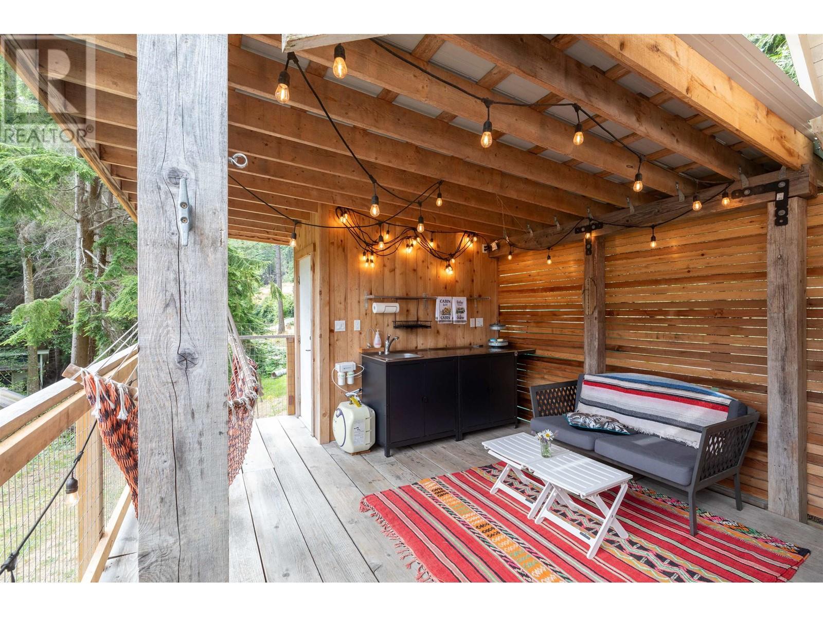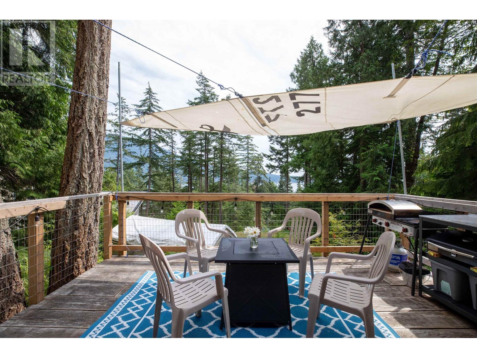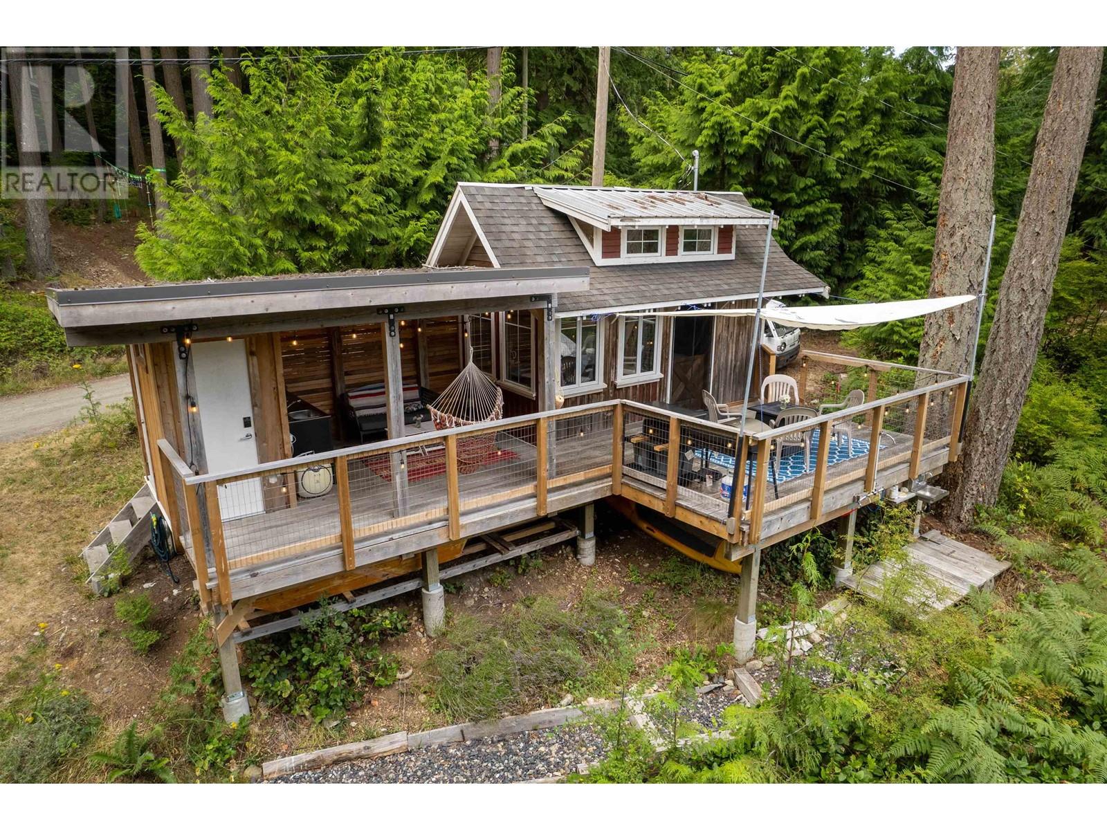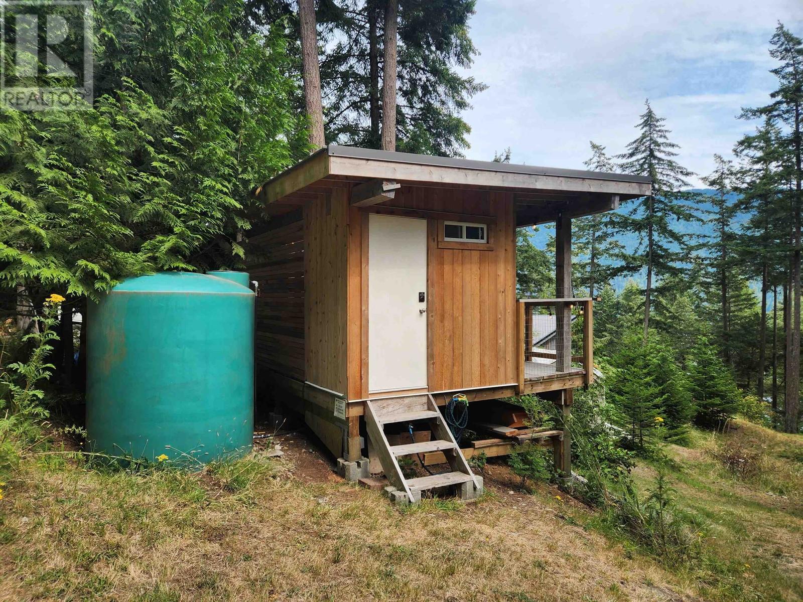 Perfectly designed 128 sqft tiny home has a beautiful view of Collingwood Channel & Mt Gardner. Located on a .24 Acre parcel this well planned home sleeps 4 and comes turn key ready for fun island times. Features include 300 sqft of deck space that has a covered area with an outdoor kitchen with running water and a filtered tap for drinking water. Hot water on demand a 200 Amp panel, camp stove ,bbq ,skillet grill ,pizza oven, outdoor fire table and sofa. There’s an outdoor shower with hot and cold water. Inside has a 24 in fridge microwave and storage. There is a future build site cleared and comes with approved septic designs. Has a composting toilet, storage room and comes with a shelter logic storage system. Walking distance to the Eastbourne community dock. Call for a tour today (id:59197)
