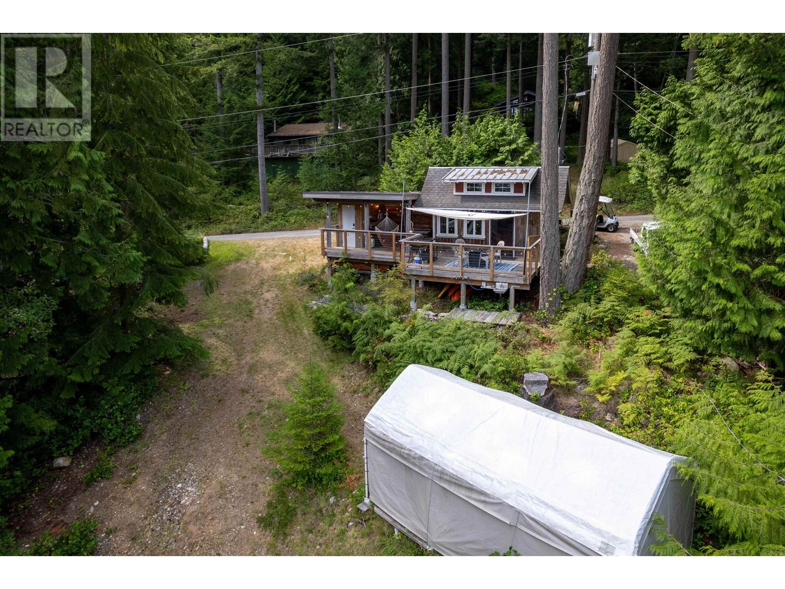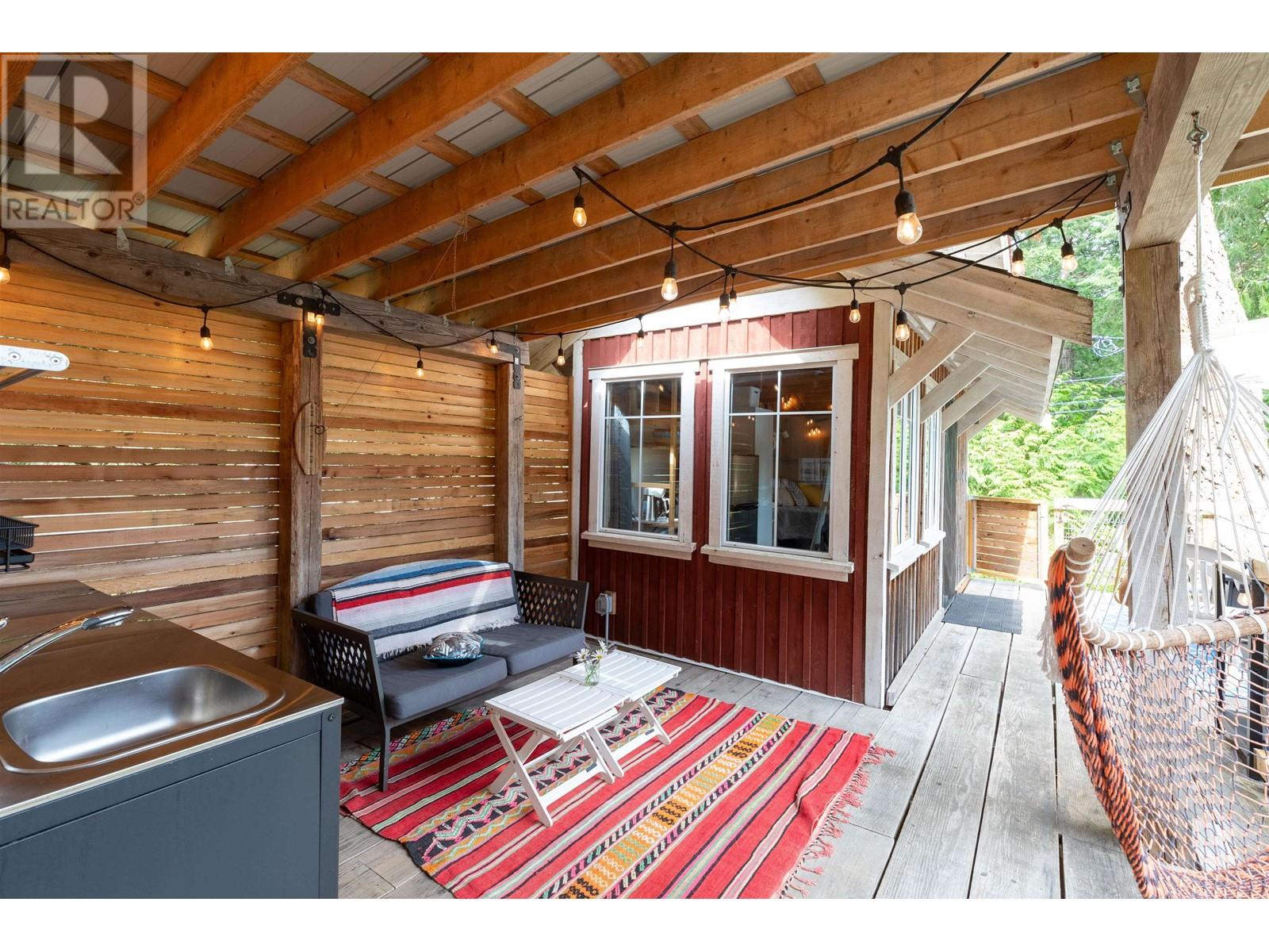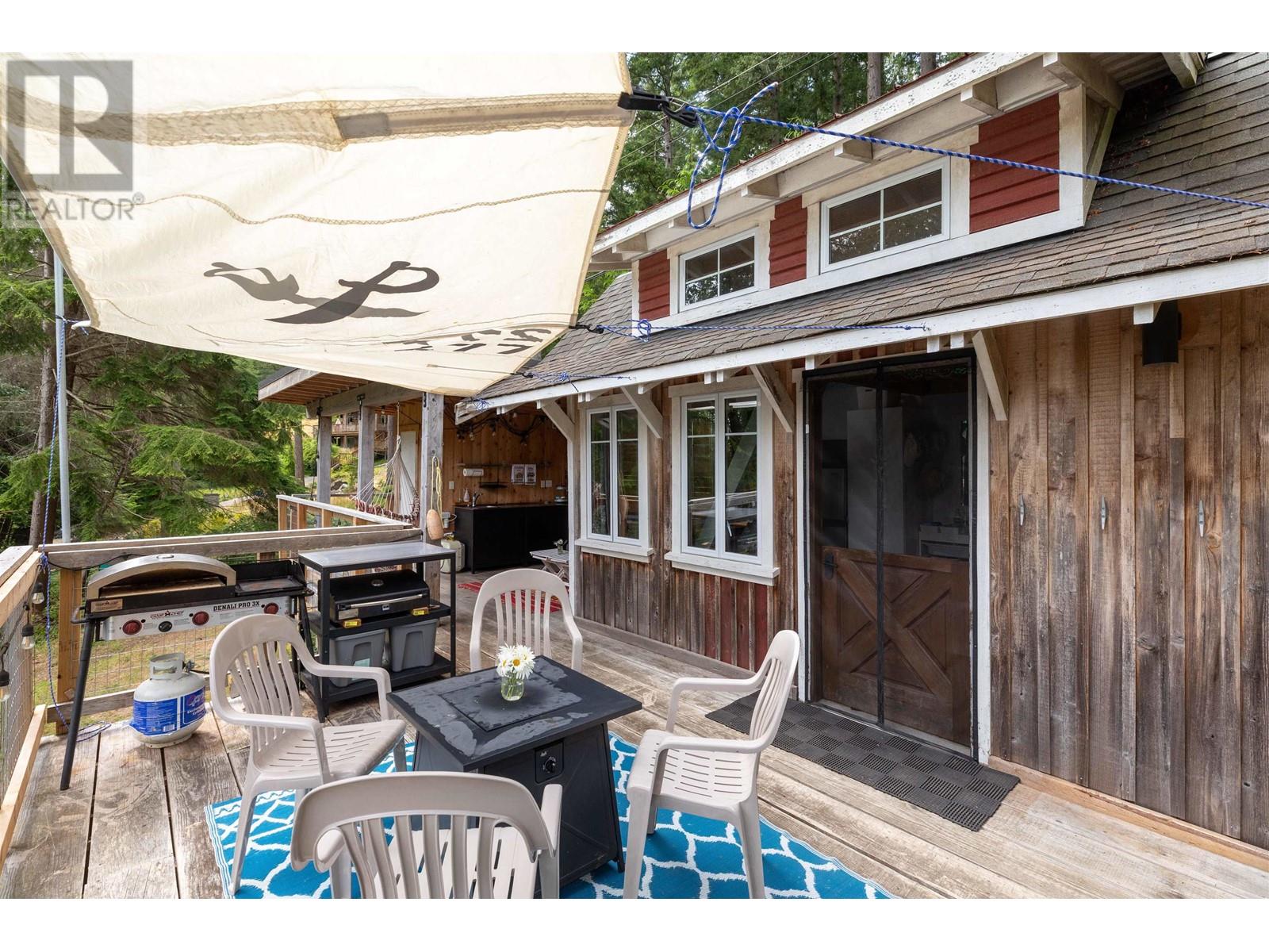 Perfectly designed 128 sqft tiny home has a beautiful view of Collingwood Channel & Mt Gardner. Located on a .24 Acre parcel this well planned home sleeps 4 and comes turn key ready for fun island times. Features include 300 sqft of deck space that has a covered area with an outdoor kitchen with running water and a filtered tap for drinking water. Hot water on demand a 200 Amp panel, camp stove ,bbq ,skillet grill ,pizza oven, outdoor fire table and sofa. There’s an outdoor shower with hot and cold water. Inside has a 24 in fridge microwave and storage. There is a future build site cleared and comes with approved septic designs. Has a composting toilet, storage room and comes with a shelter logic storage system. Walking distance to the Eastbourne community dock. Call for a tour today (id:59197)