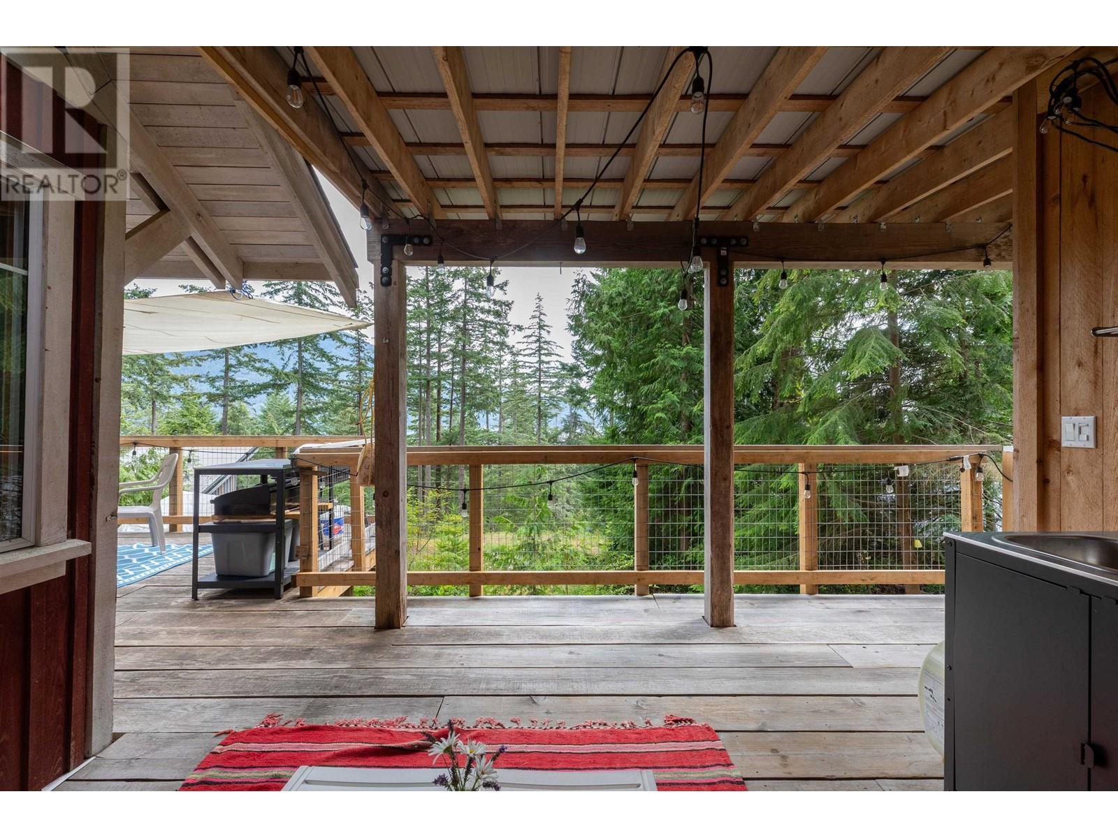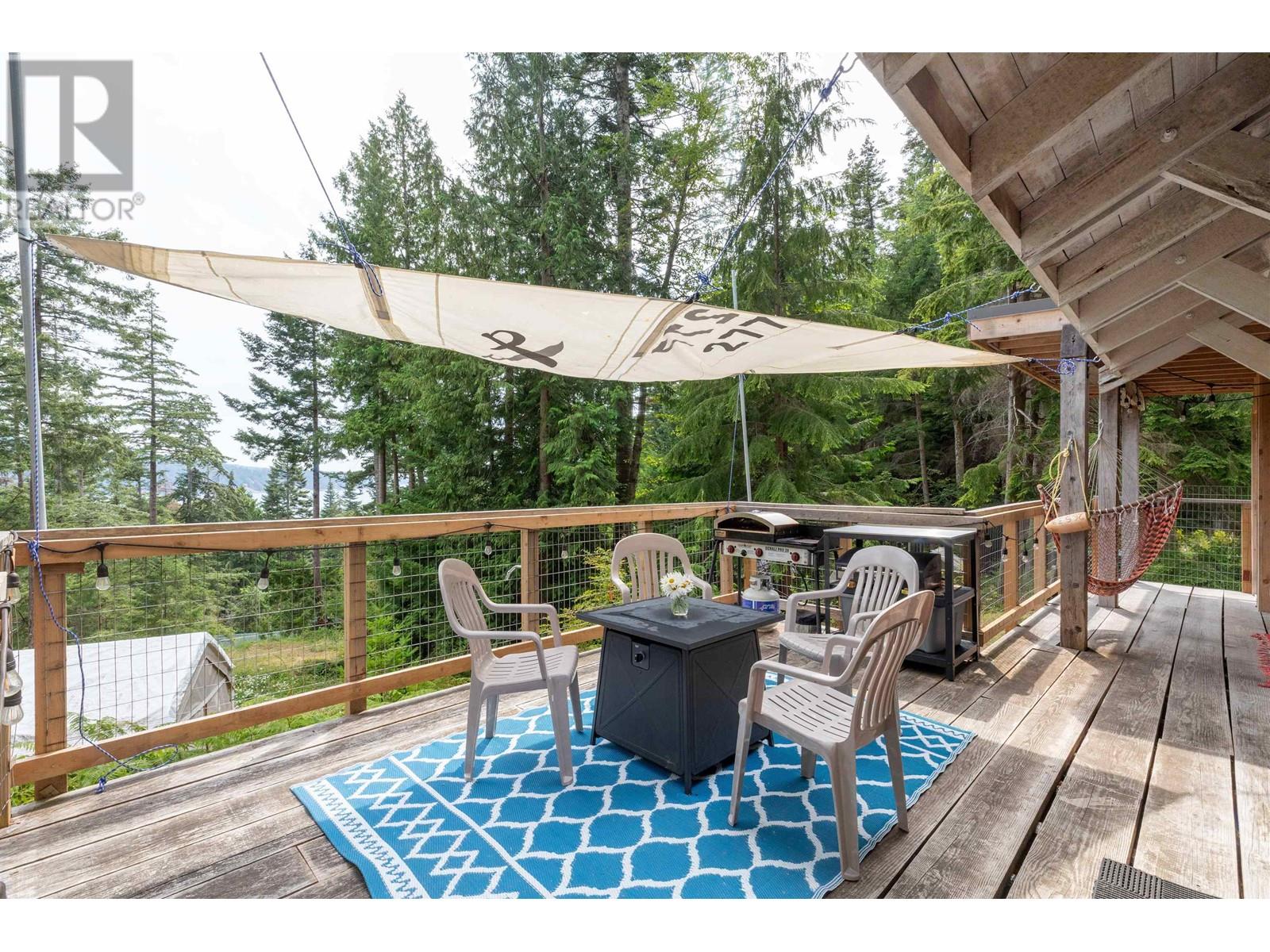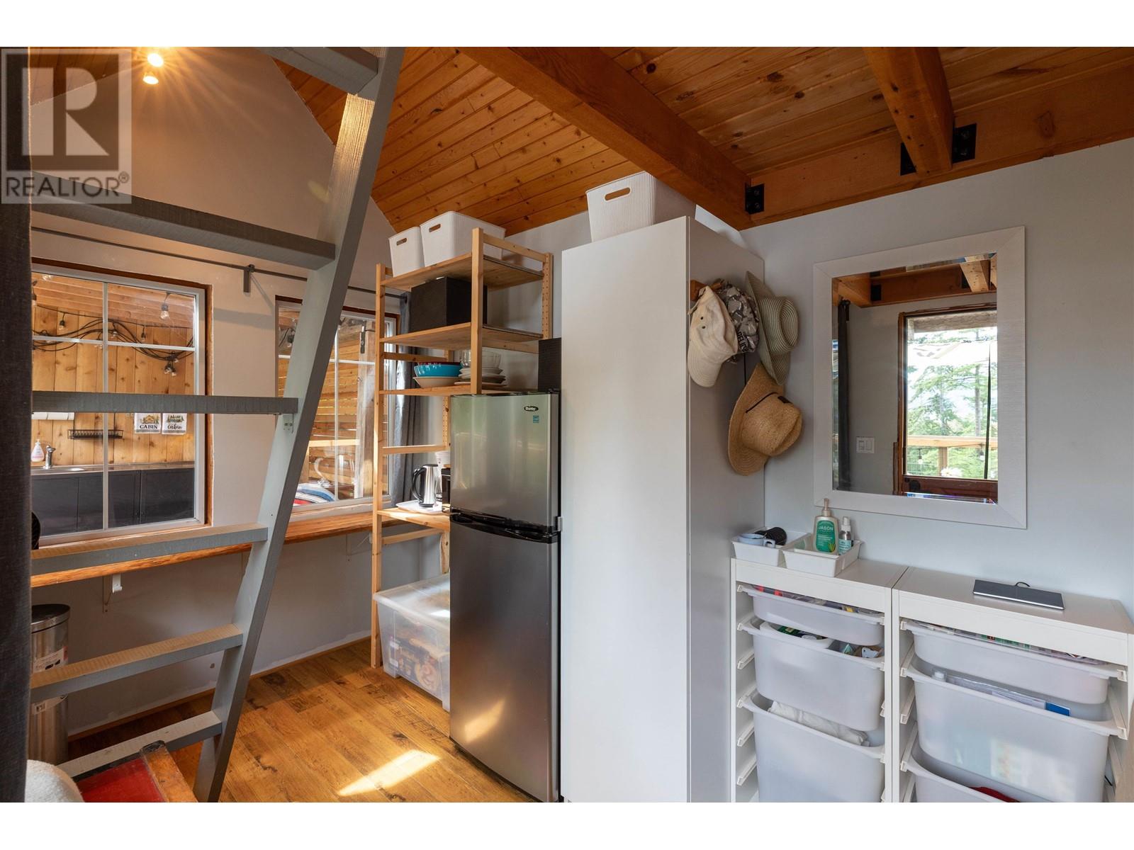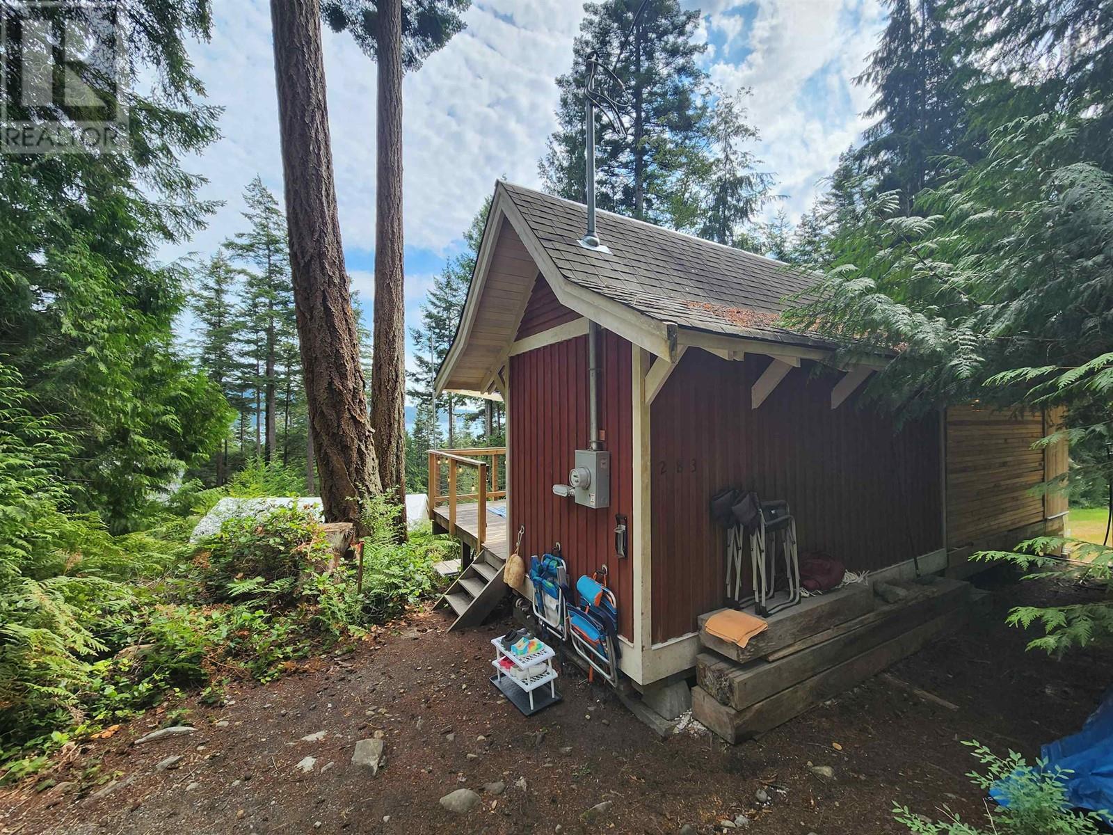 Perfectly designed 128 sqft tiny home has a beautiful view of Collingwood Channel & Mt Gardner. Located on a .24 Acre parcel this well planned home sleeps 4 and comes turn key ready for fun island times. Features include 300 sqft of deck space that has a covered area with an outdoor kitchen with running water and a filtered tap for drinking water. Hot water on demand a 200 Amp panel, camp stove ,bbq ,skillet grill ,pizza oven, outdoor fire table and sofa. There’s an outdoor shower with hot and cold water. Inside has a 24 in fridge microwave and storage. There is a future build site cleared and comes with approved septic designs. Has a composting toilet, storage room and comes with a shelter logic storage system. Walking distance to the Eastbourne community dock. Call for a tour today (id:59197)