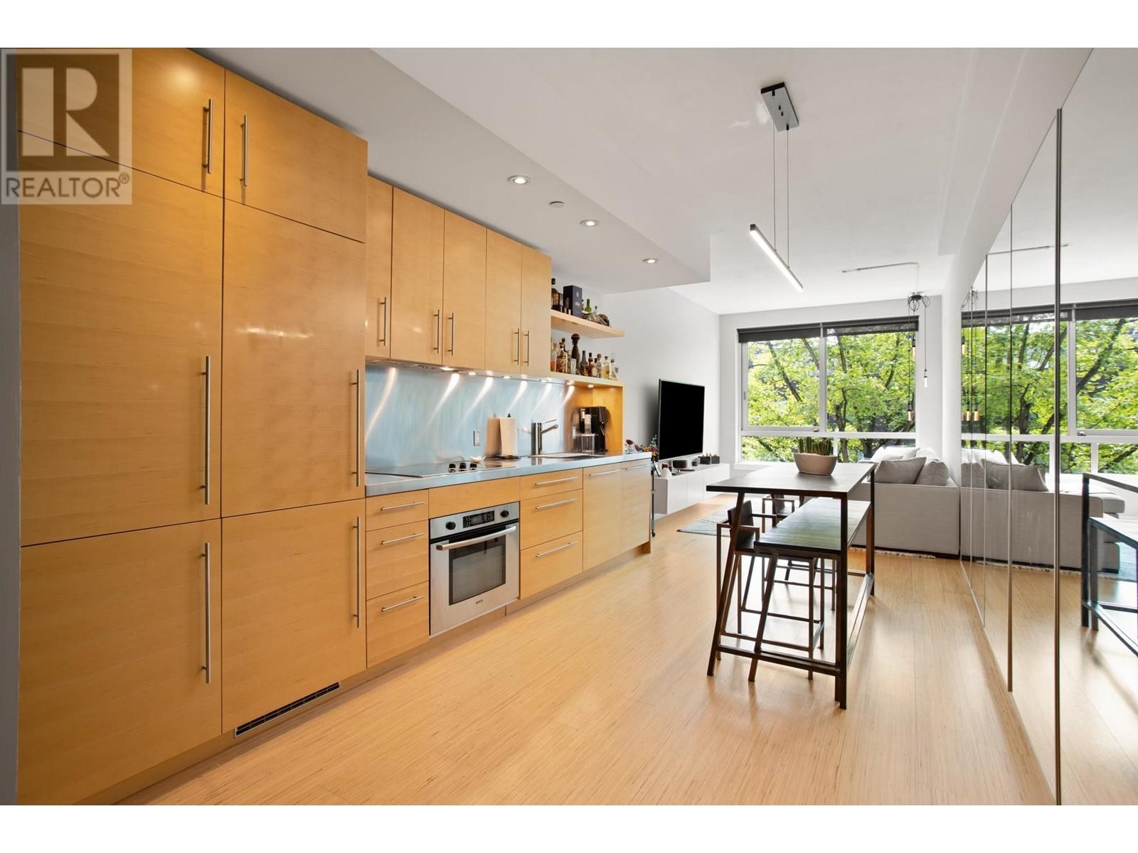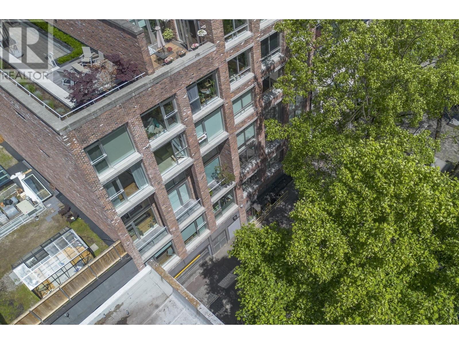 CLASSY heritage conversion at AWARD WINNING TERMINUS” BUILT BY THE SALIENT GROUP, & ACTON OSTRY ARCHITECTS,SOUTH FACING WITH GREEN TREED VIEW OVER TROUNCE ALLEY, 6th floor of 7. SPACIOUS AIRY 1 BEDROOM OPEN LOFT with bamboo floors, clever built-ins, 10´ceilings, imported lighting, linear kitchen w eating bar & NEW FRIDGE W 10 YR WARRANTY. Quality details through-out, spacious bath with separate water closet. FAB FAB PANORAMIC views from the common area rooftop deck/lounge/patios, 1 parking 1 locker. VIBRANT WEST GASTOWN AREA of boutiques, restaurants BONUs: STEPS TO CANADA LINE & SEA BUS (id:59197)
