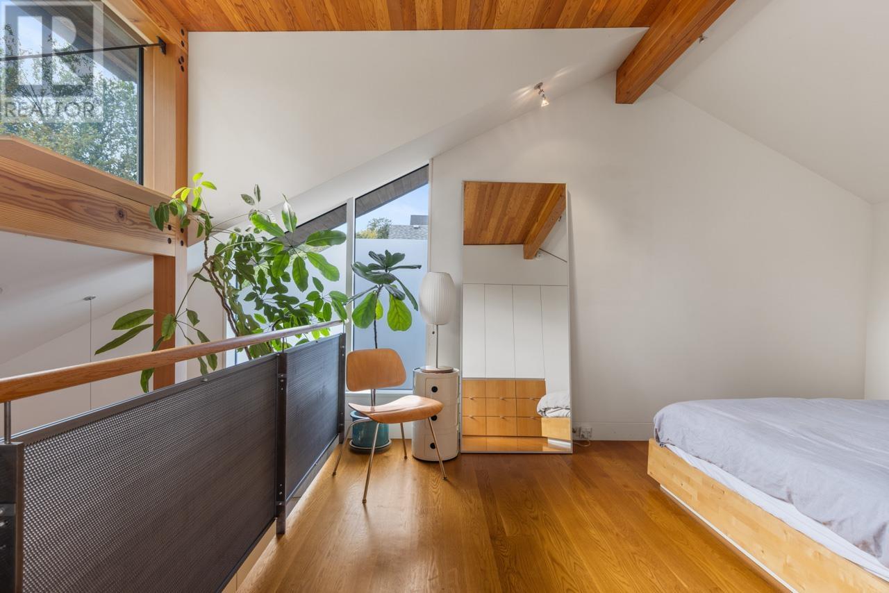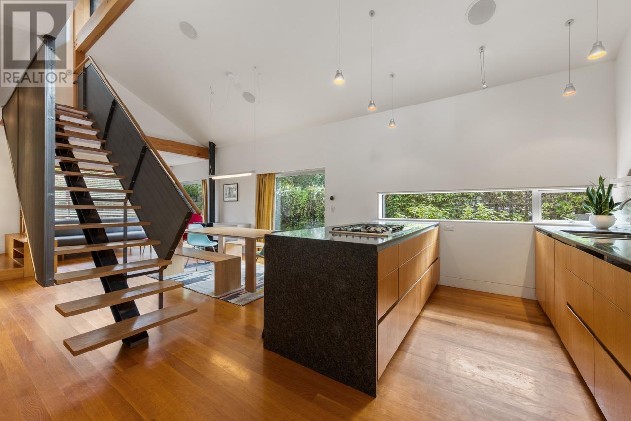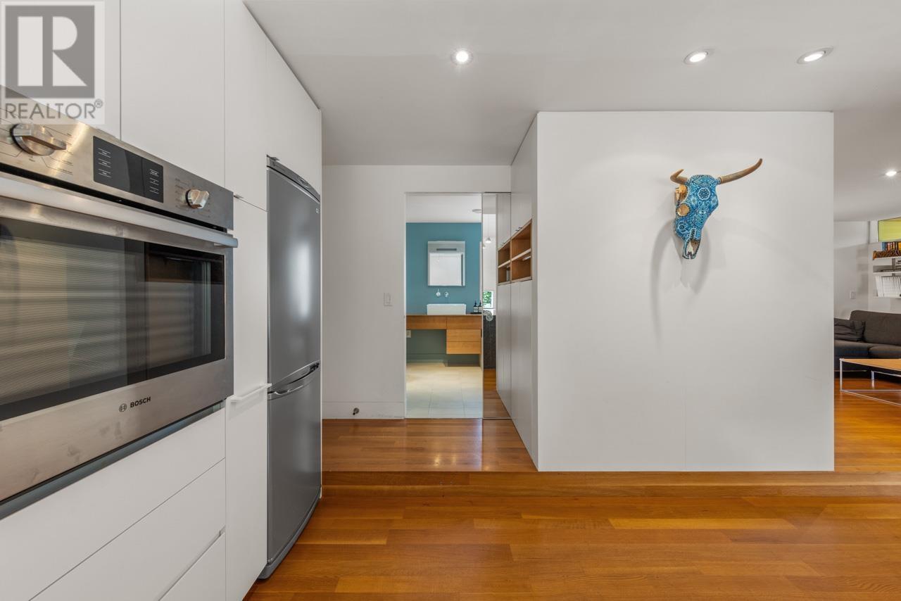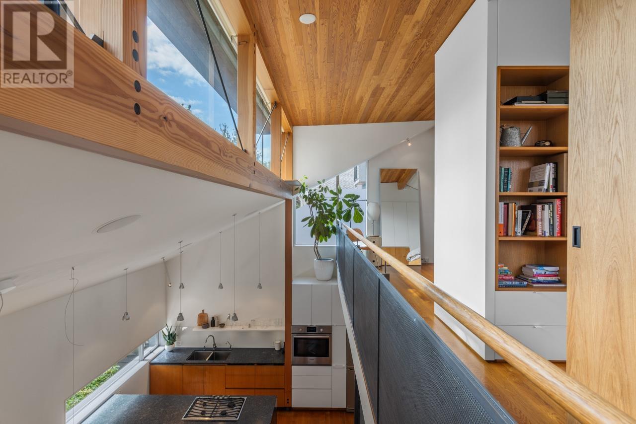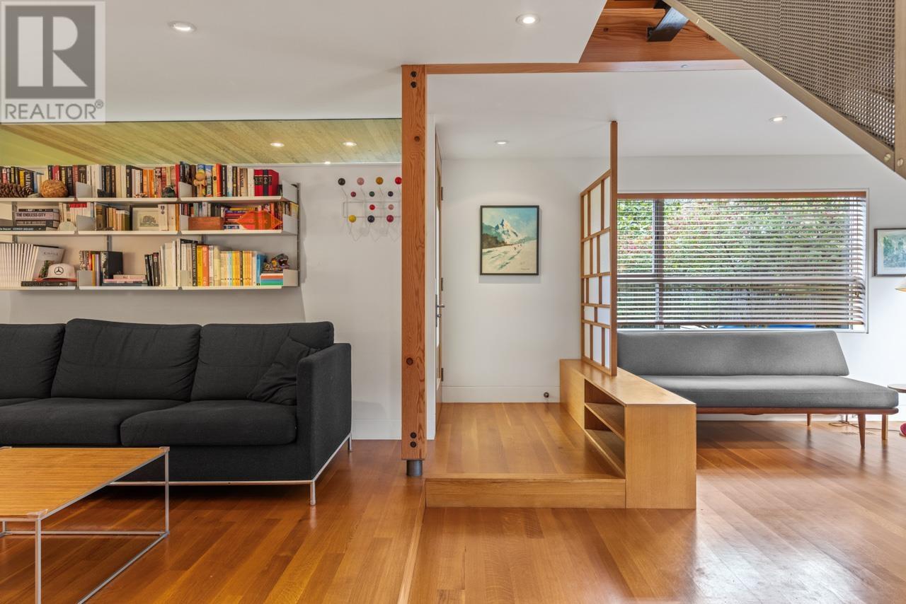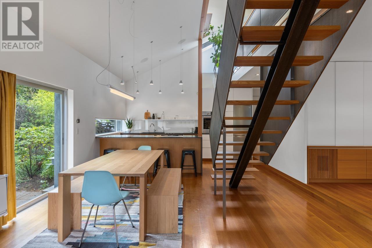 On a quiet corner of a traffic calmed block you will find this marvelous example of modern minimalist design. Completely reimagined to a very high standard, this home is truly one of a kind. Efficient open floorplan with large principal spaces, built-in storage, soaring ceilings, oversized windows & sliders for seamless indoor/outdoor flow. An entertainers dream! The kitchen has a large island with bar seating, gas cooktop & new wall-oven. The media room is easily converted to a great third bedroom. The spa-like bathroom with separate tub & shower completes this level. Up the floating stairs you’ll find two sleeping areas with loads of storage, one with 2 pc ensuite. Attached garage, radiant heat, gas fireplace, Lutron lighting, motorized blinds, lovely yard. Must be seen to be fully appreciated! (id:59197)