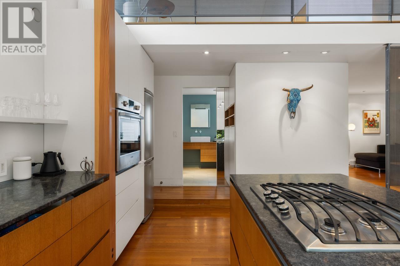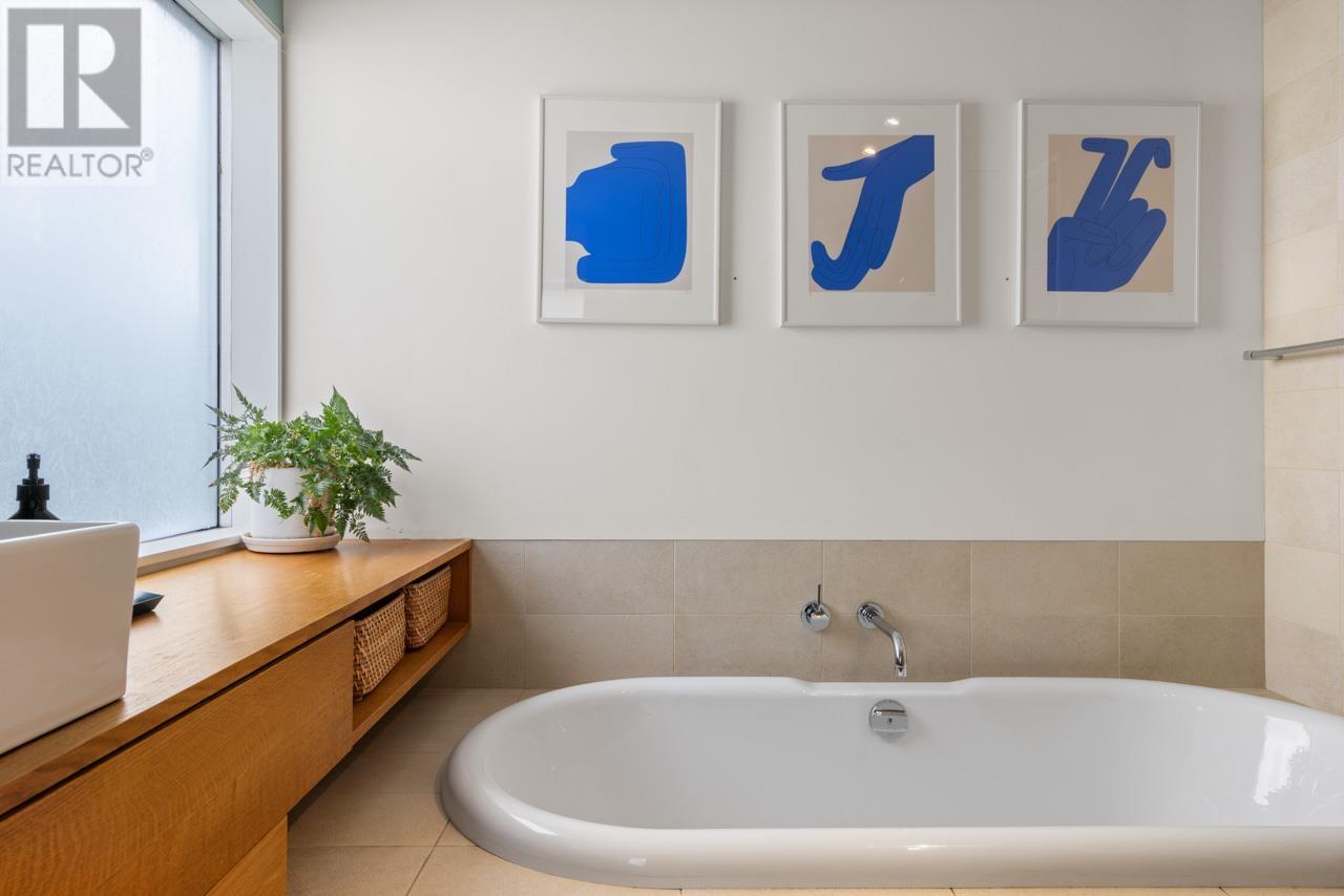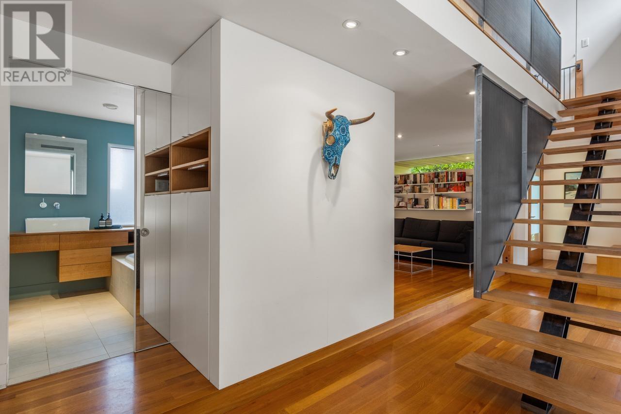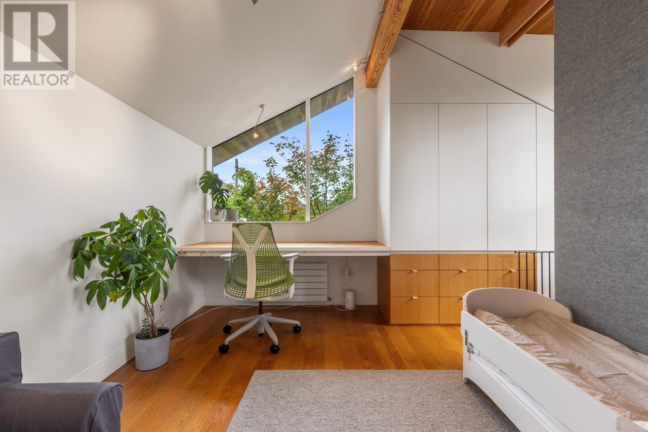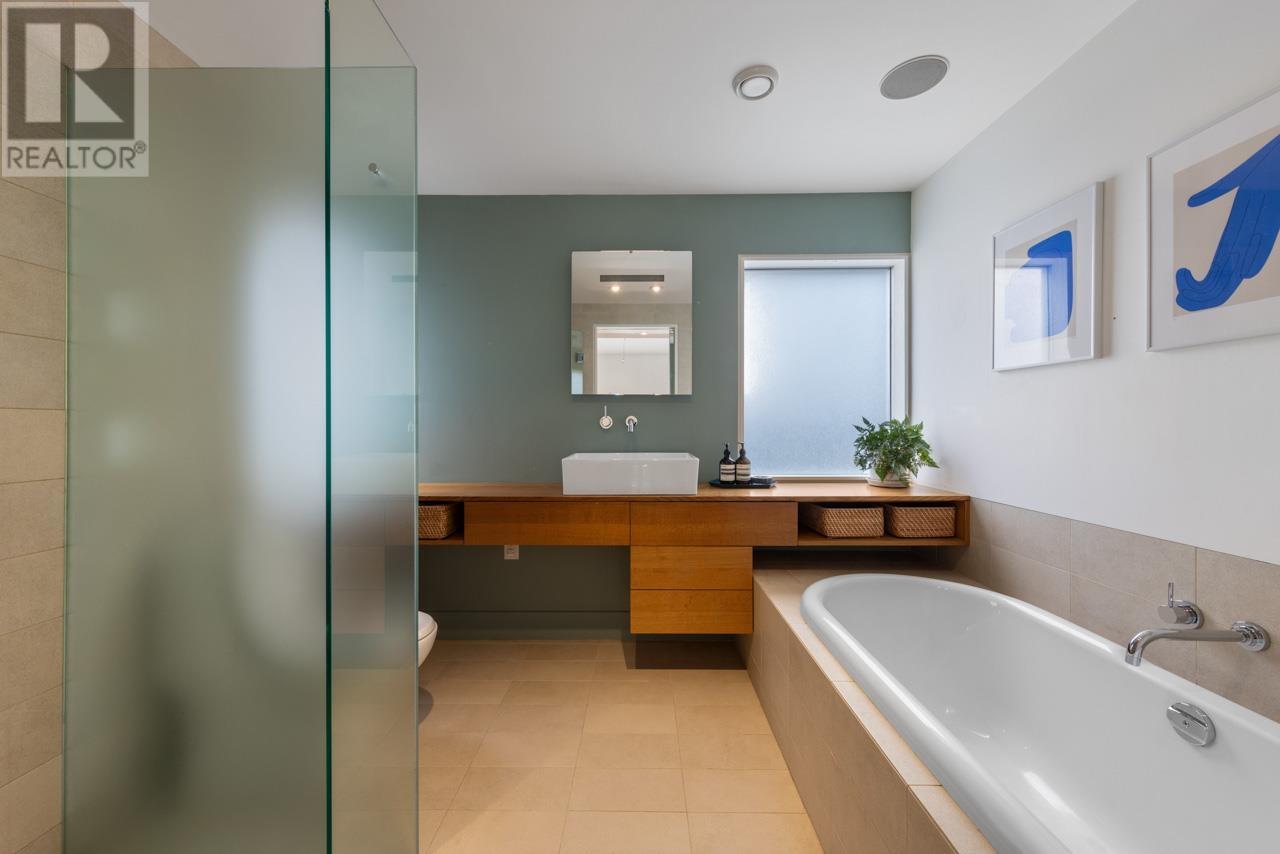 On a quiet corner of a traffic calmed block you will find this marvelous example of modern minimalist design. Completely reimagined to a very high standard, this home is truly one of a kind. Efficient open floorplan with large principal spaces, built-in storage, soaring ceilings, oversized windows & sliders for seamless indoor/outdoor flow. An entertainers dream! The kitchen has a large island with bar seating, gas cooktop & new wall-oven. The media room is easily converted to a great third bedroom. The spa-like bathroom with separate tub & shower completes this level. Up the floating stairs you’ll find two sleeping areas with loads of storage, one with 2 pc ensuite. Attached garage, radiant heat, gas fireplace, Lutron lighting, motorized blinds, lovely yard. Must be seen to be fully appreciated! (id:59197)