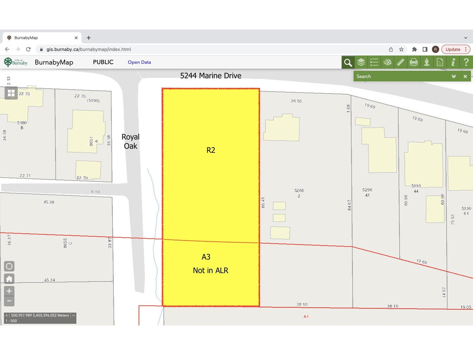 Under the new SSMUH zoning – build 6 large towhomes, duplexes or rowhouses here – rental or strata! This 35,600 square ft lot has 286′ of frontage along Royal Oak. It’s where Royal Oak terminates and it is south of Marine Drive. The grade level slopes down resulting in a quiet lot which has been designated to allow 6 homes of about 2,000 Sq ft each. AND each home could have its own huge 2000 SF garden. Call me today for details and to receive a copy of Burnaby’s new SSMUH building bylaw. If you are looking to innovate – call now for flexible terms while they are still available. There are no other development opportunities in Burnaby or Vancouver like this unique offering. RS zone/25,000 SF and A3 zone/10,500 SF of garden area. (id:59197)