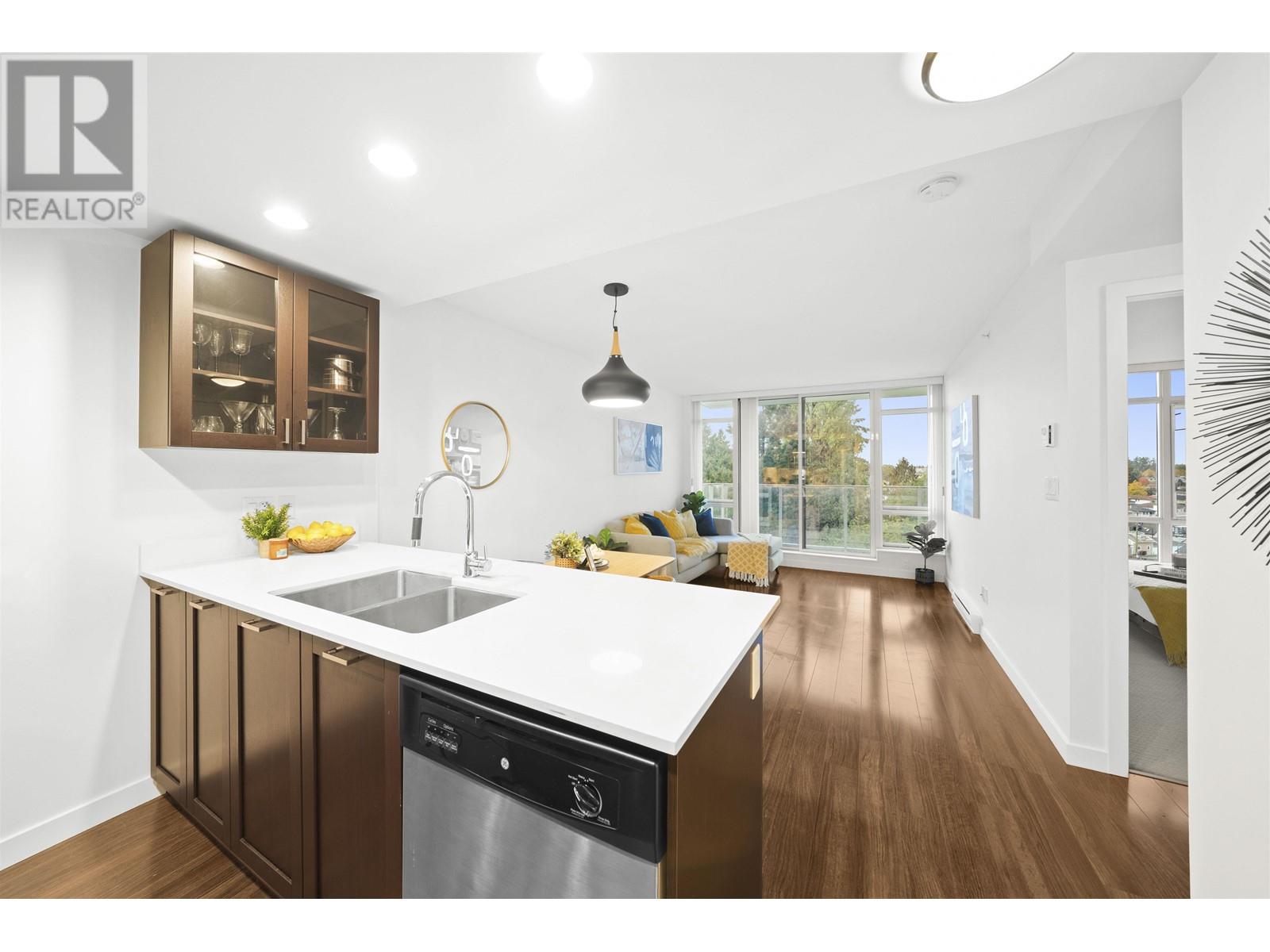 Bright & spacious CORNER 1 Bed + Den with south facing views on quiet side of SOLID CONCRETE building. FRESHLY PAINTED, meticulously designed OPEN PLAN layout maximises space & functionality with an EXTREMELY EFFICIENT floorplan. High-end finishes include BEAUTIFUL quartz countertops & S/S appliances with BRAND NEW fridge. Abundant natural light fills the unit through floor-to-ceiling windows and offer great treelined views to the south. Located at the vibrant intersection of Kingsway & Nanaimo, directly on top of Shoppers for maximum convenience and just minutes from the Nanaimo Skytrain Station. Top-tier building amenities include a TWO LEVEL fully equipped fitness centre, party room and garden terrace. 1 EXTRA LARGE parking next to the elevator + 1 storage. OPEN HOUSE – SUN OCT 20 @ 2-4PM! (id:59197)
