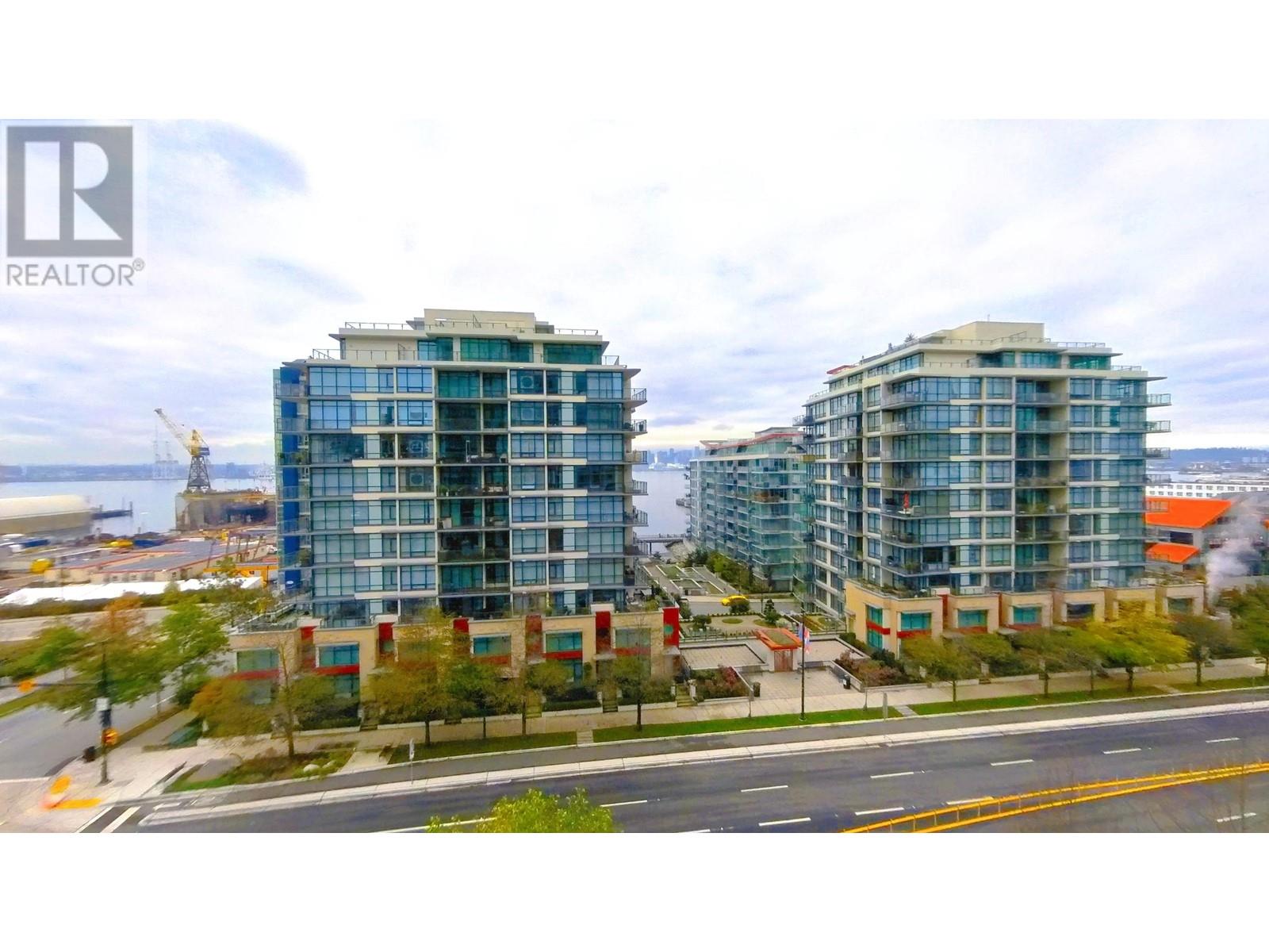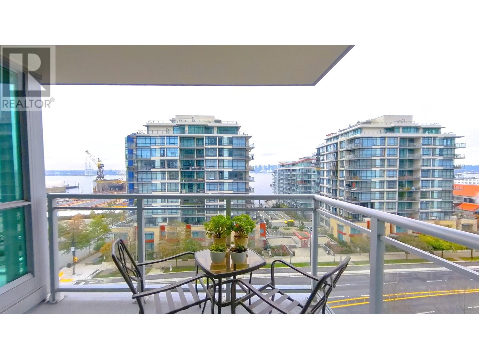 Bright South-facing 1 BEDROOM & DEN/FLEX with balcony. Oversized 737sqft of living space, enjoy water views of Burrard Inlet, Downtown Vancouver Skyline and Lions Gate Bridge. The suite is summer ready with Air Conditioning. Kitchen features granite countertops, Stainless Steel appliances with gas range. Huge bedroom can accommodate additional work from home space, as well as the flex/den space. 1 secure underground parking & 1 storage and lots of bike storage in the building. Steps to Lonsdale Quay, Shipyards Square, Seabus, shops & restaurants and more. Building amenities include concierge, a party room as well as the option to access to the Pinnacle Hotel’s indoor pool facility & gym. AVAILABLE FOR MOVE IN DECEMBER 1, 2024 (id:59197)