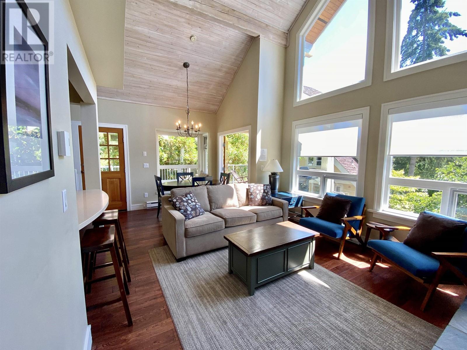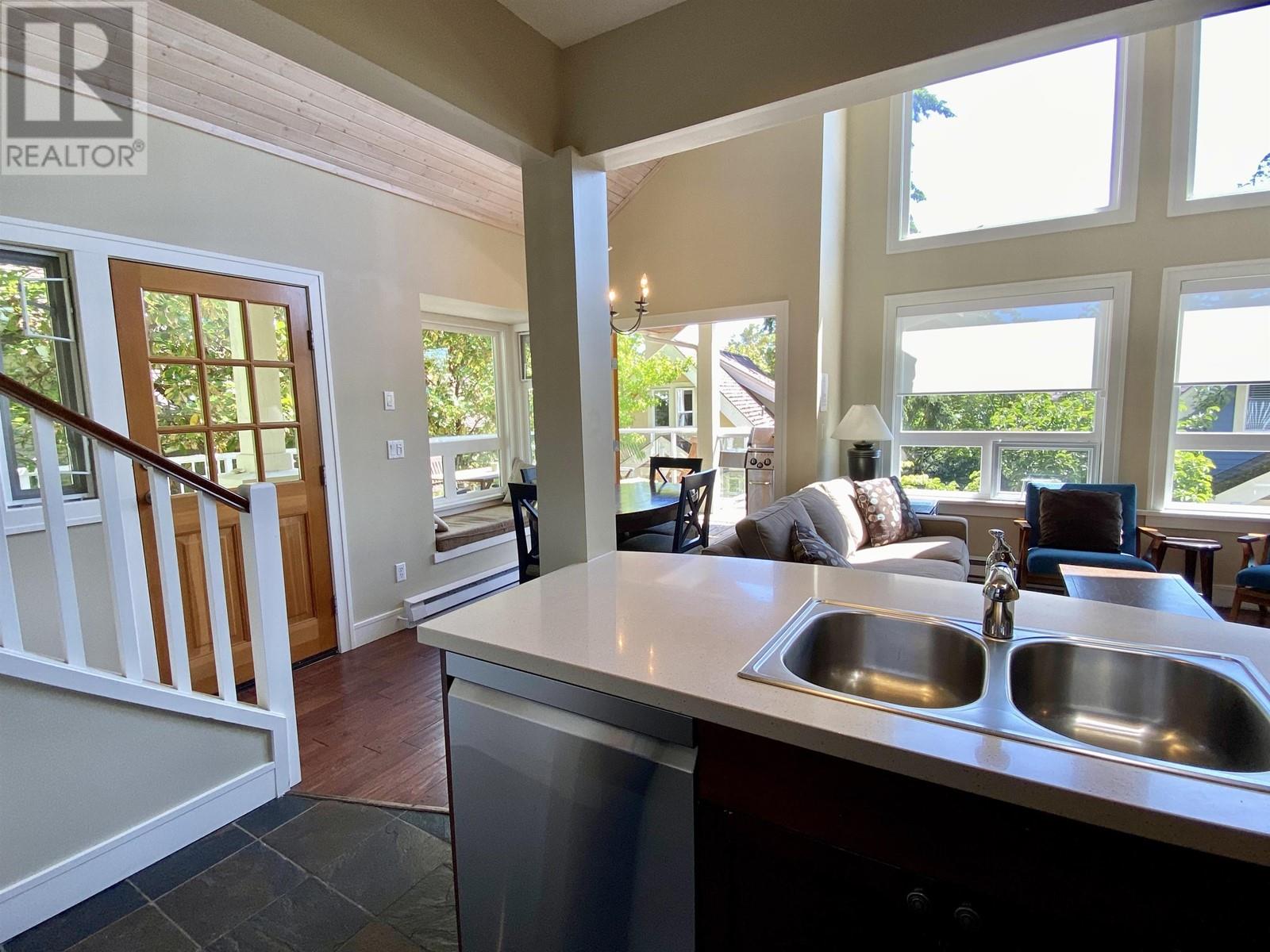 Relax and Enjoy this carefree recreational getaway at Currents at Otter Bay! This south-facing features primary bedroom on main floor, spacious layout and large sun-drenched deck. This location has the benefit of your own shaded backyard for the kids to play. Fractional ownership (1/4 interest) allows one week per month and 2 consecutive weeks in the summer Rent out unused time. Turnkey: furnished and equipped incl in-suite laundry, BBQ and deck furniture. Monthly fees incl taxes, maintenance, phone, internet, propane, linens, towels, soaps, garbage bags and paper towels. Pet-friendly! Features swimming pools and ample common areas. Steps to Otter Bay Marina, Kayaking, Stand-up Paddle boarding, Beach, Café and Clubhouse. Walking distance to ferry, Pender Island Golf Course and restaurants. (id:59197)