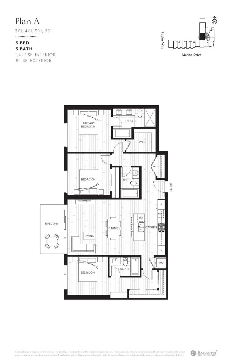 Welcome to Executive on the Park, a striking new landmark of 88 condos & townhomes surrounded by lush landscaping and an intimate parkette at the gateway of West Vancouver. The seawall and all of life’s amenities at Park Royal are at your doorstep. This spacious west facing 3 bed, 3 bath home offers 1429 sf of interior space with a 79 sf balcony. Expansive kitchen features quartz counters with waterfall island, integrated Fisher & Paykel appliance package incl gas range, and sleek cabinetry. Master ensuite features oversized tiles and separate shower and tub. Exclusive amenities include 24/7 concierge, building manager, gym, common room, expansive lobby featuring double height ceilings and 3 sided fireplace; everyday living feels like a five star hotel! Includes 1 parking, 1 bike locker. Come visit our sales centre located at 660 Clyde Ave, West Vancouver. We are open daily 11 – 4pm. Ask us about our current promotion and investor package! (id:59197)