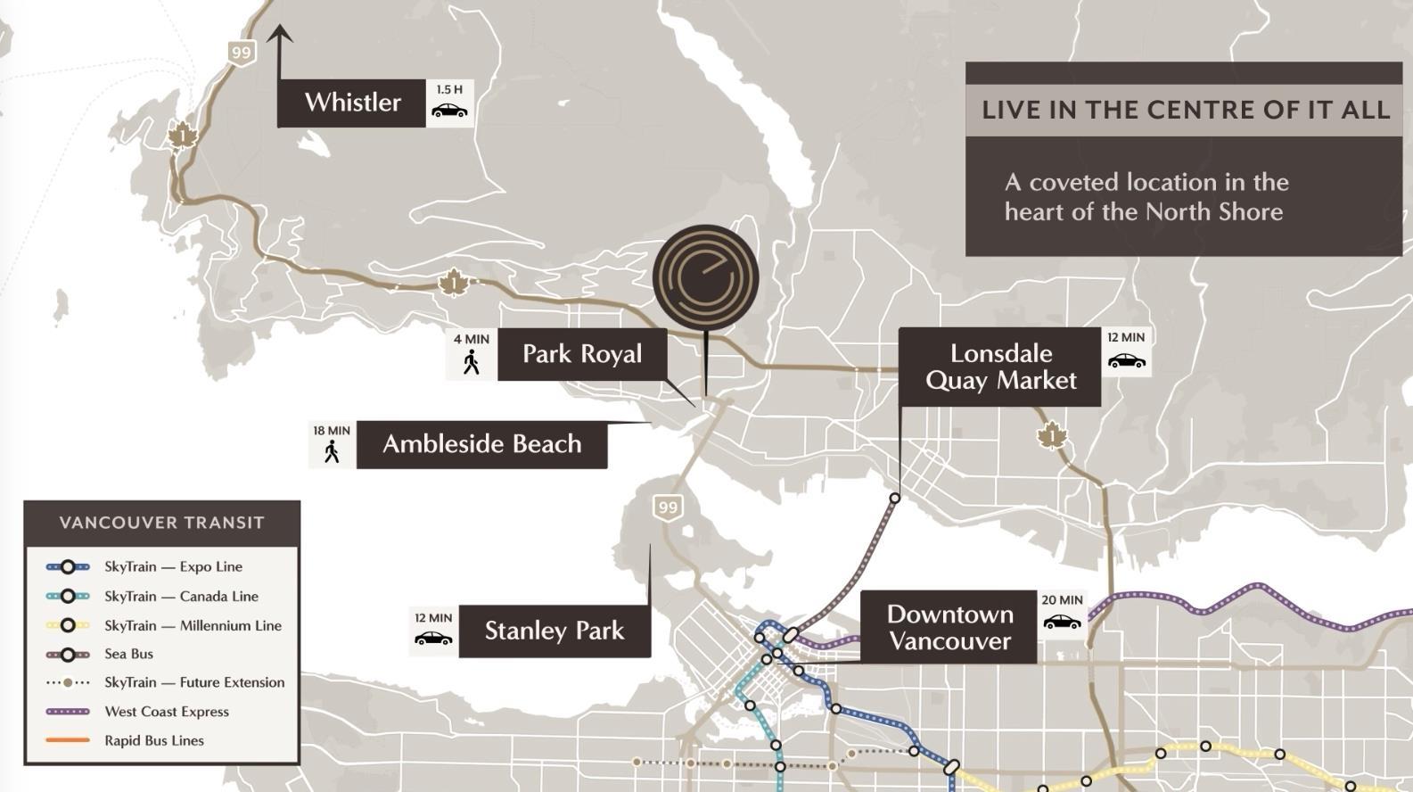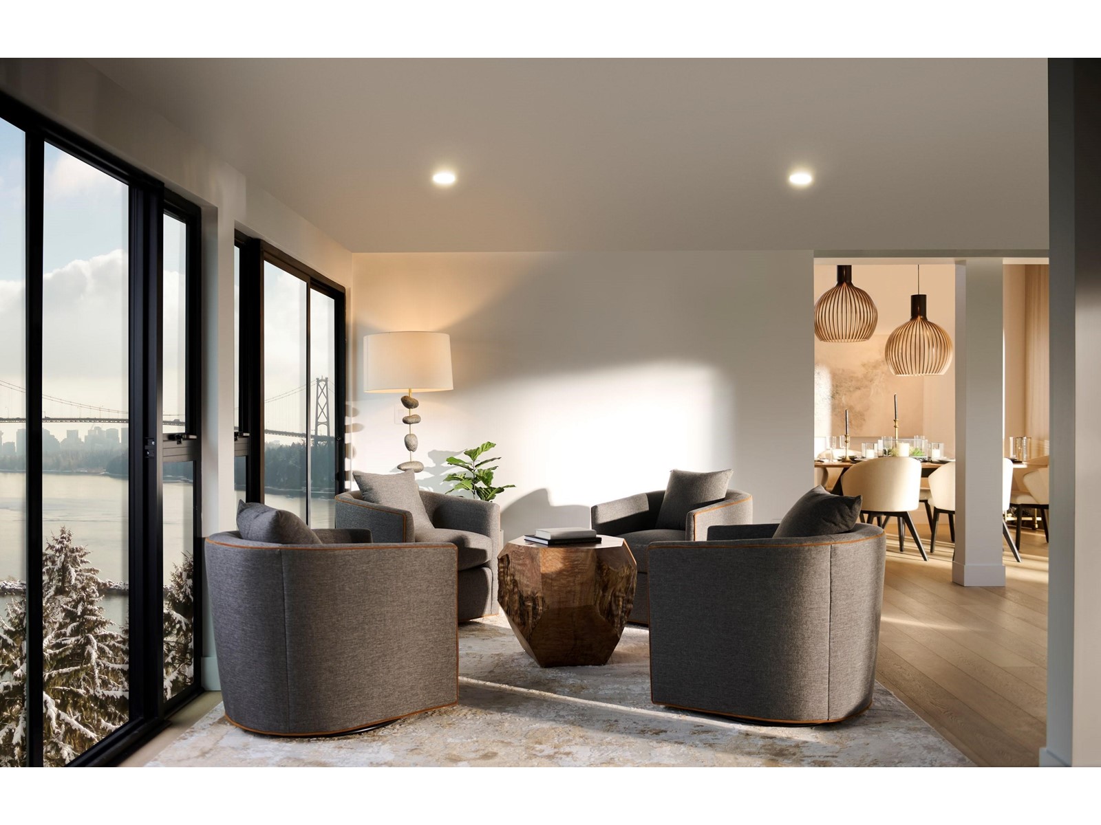 Welcome to Executive on the Park, a striking new landmark of 88 condos & townhomes surrounded by lush landscaping and an intimate parkette at the gateway of West Vancouver. The seawall and all of life’s amenities at Park Royal are at your doorstep. This spacious west facing 2 bed, 2 bath home offers 1101 sf of interior space with a 82 sf balcony. Expansive kitchen features quartz counters with waterfall island, integrated Fisher & Paykel appliance package incl gas range, and sleek cabinetry. Master ensuite features oversized tiles and separate shower and tub. Exclusive amenities include 24/7 concierge, building manager, gym, common room, expansive lobby featuring double height ceilings and 3 sided fireplace; everyday living feels like a five star hotel! Includes 1 parking, 1 bike locker. Come visit our sales centre located at 660 Clyde Ave, West Vancouver. We are open daily 11 – 4pm. Ask us about our current promotion and investor package! (id:59197)