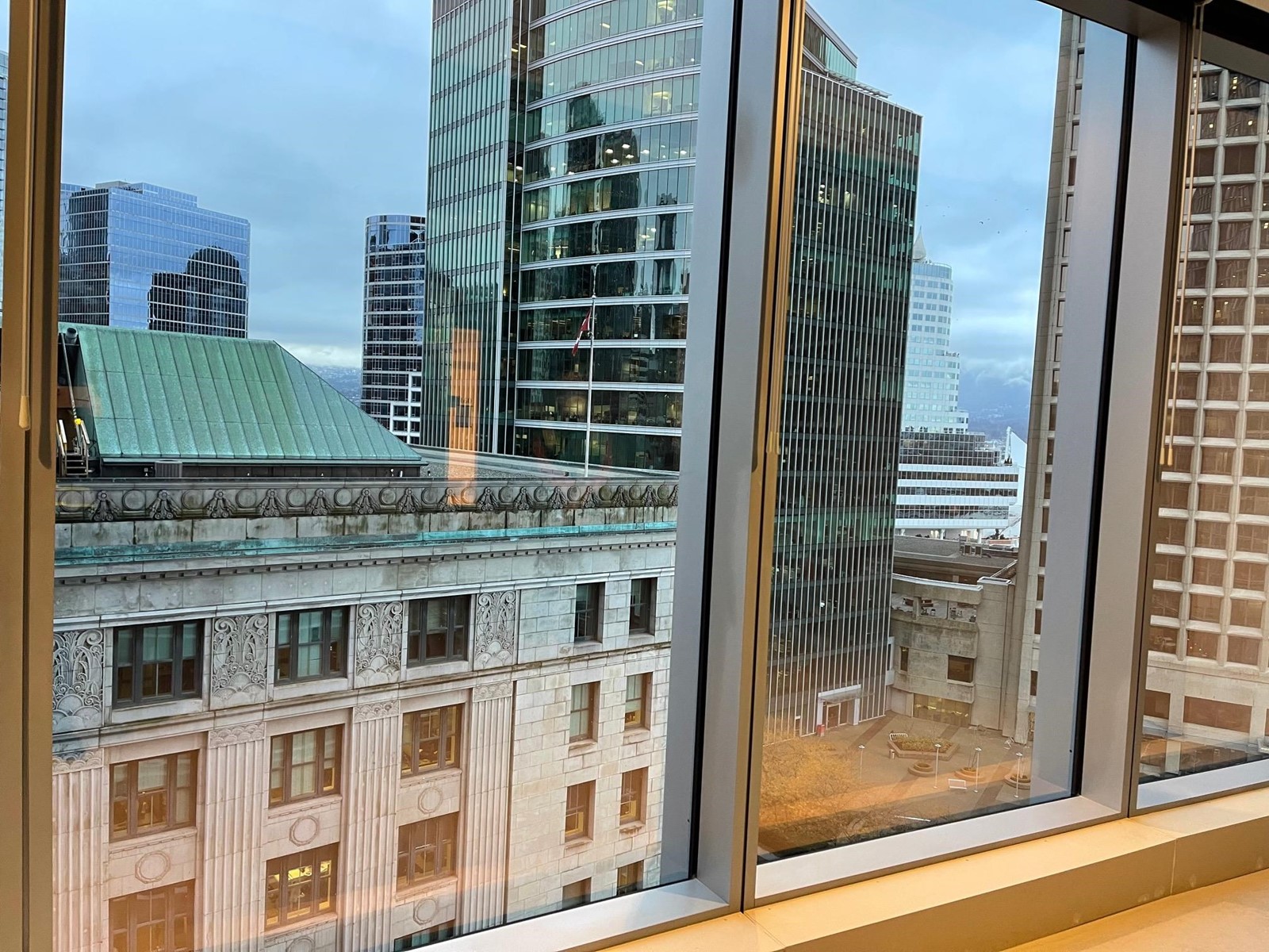 AAA office: The most prestigious building with the best amenities in the prime central Business District. Best location, just steps to the Waterfront Skytrain and the North Vancouver Ferry dock, and in close proximity as well to Granville Street, Gastown and Coal Harbour. The base of the tower to be outfitted with a mix of full service and fast food dining options plus retail. With space thus for hundreds of daily office workers and support staff, the building will bring a great deal of additional pedestrian activity to the core. Precedent setting Bike Services including Bike Lobby with secured bike storage, bike washing area and showers for biker’s to cleanup before work. 2 Fully equipped gym w/aerobic & strength equipment, private shower & changing rooms, fitness studio & towel service. 28/F workplace amenities 30/F sky Terrace w/indoor rooftop kitchenette and outdoor lounge. 8 high speed elevators with 2 dedicated parking elevators. (id:59197)